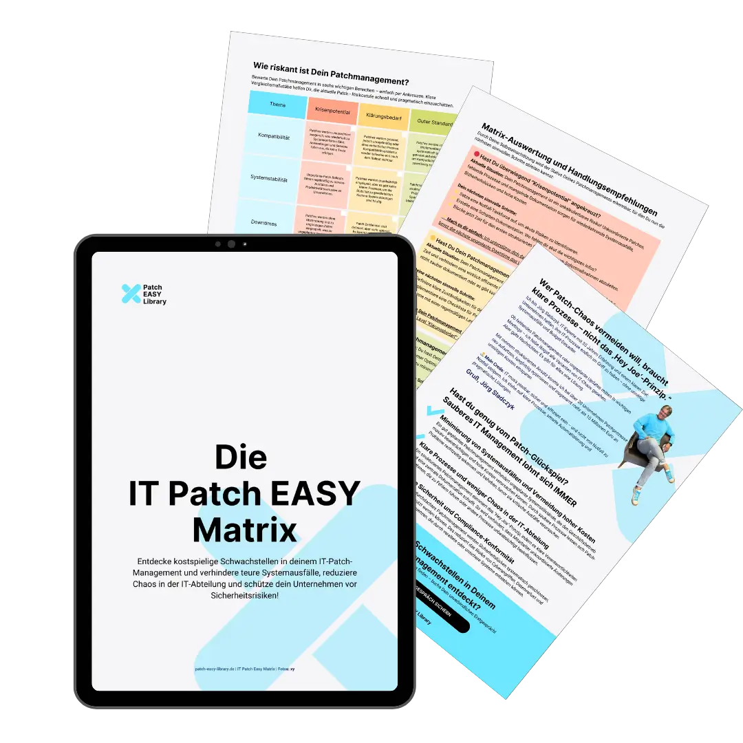 In der Patch EASY Library erfährst du, wie du kostspielige Schwachstellen in deinem IT-Patch-Management entdeckst, teure Systemausfälle verhinderst, Chaos in der IT-Abteilung reduzierst und dein Unternehmen vor Sicherheitsrisiken schützt!